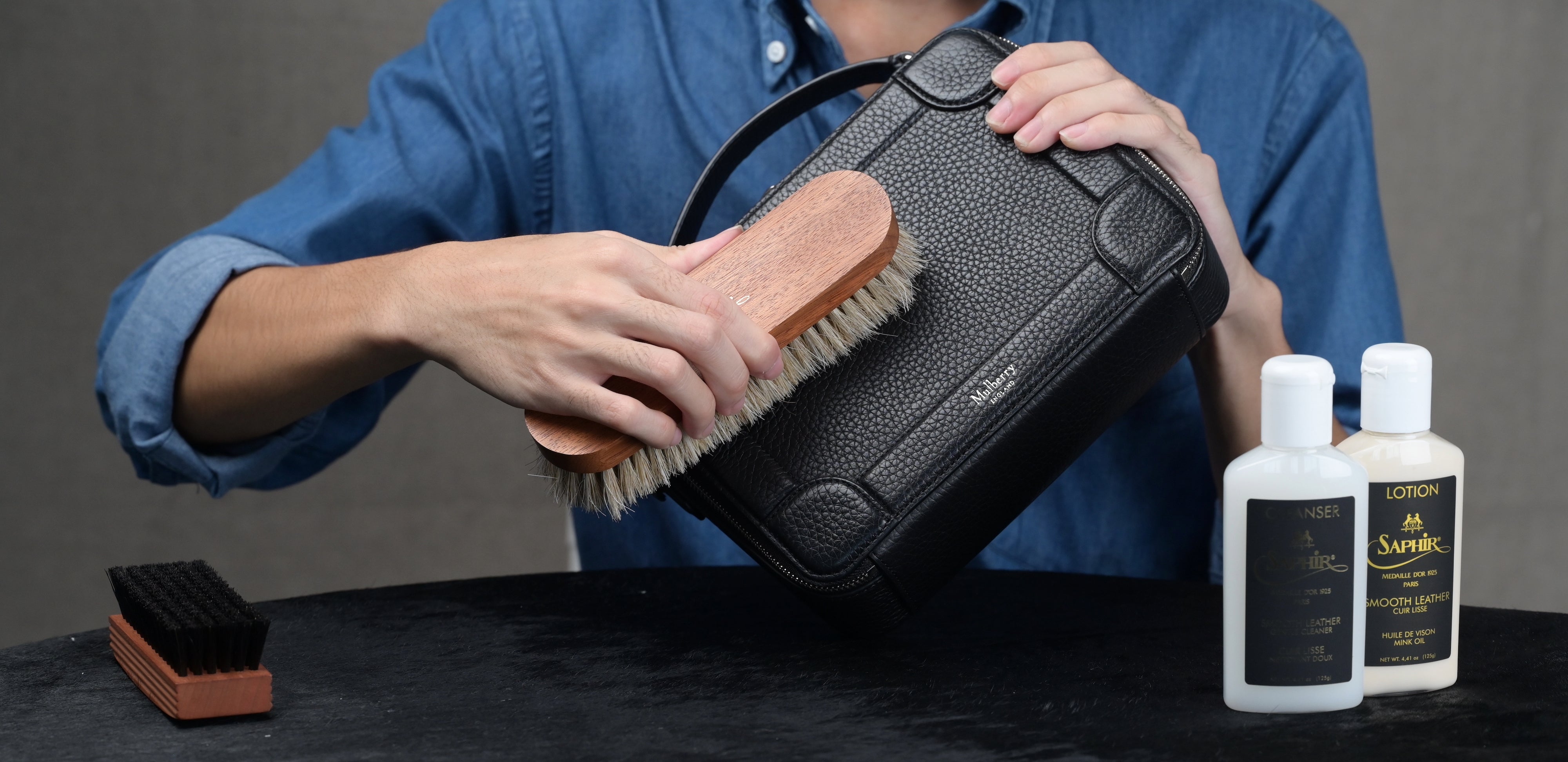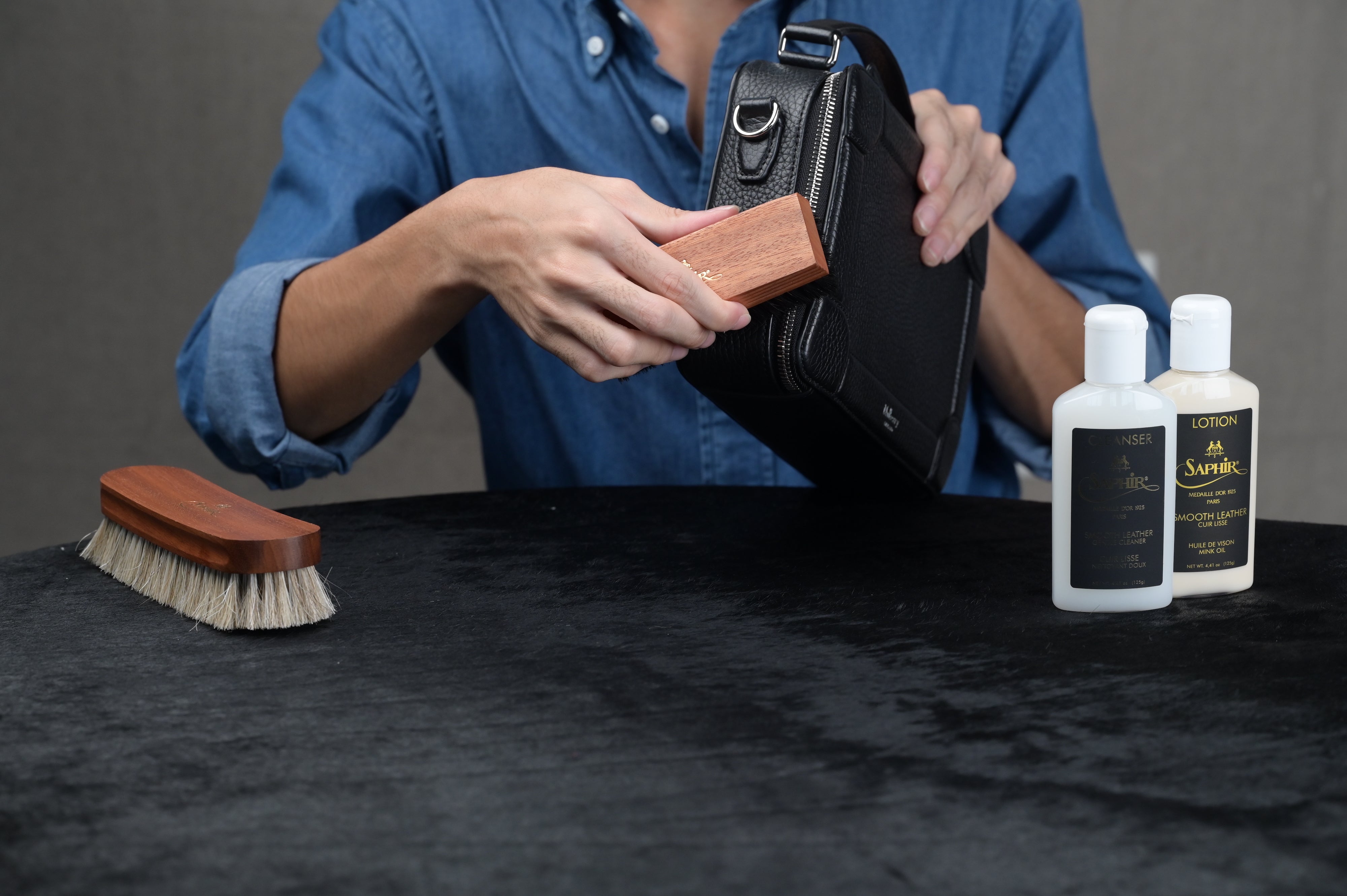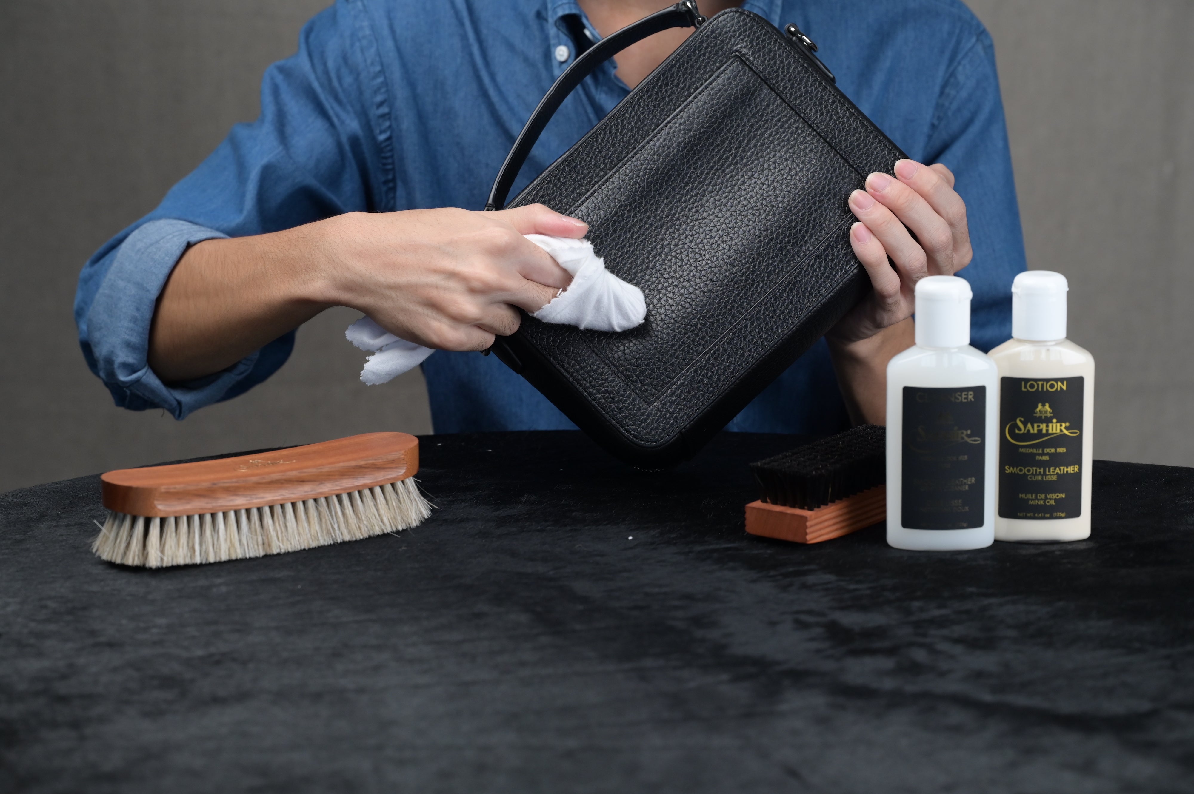 Just like your leather shoes, bags also need to be prepared first before proceeding with any form of restoration or treatment. To begin, brush off any superficial dust on your leather bag using a horsehair brush. Hold the brush firmly and brush in a ‘back-and-forth’ motion over the entire bag.