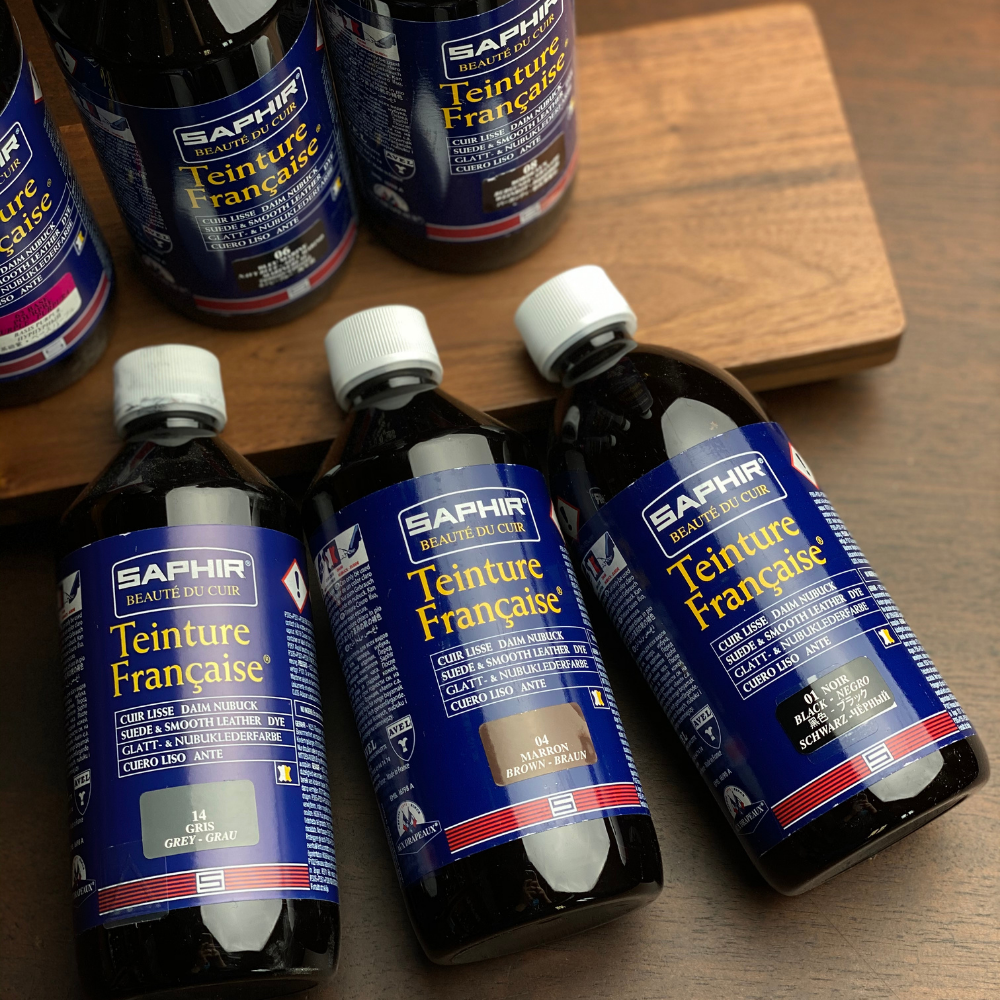 Liquid dye for all types of smooth leather, suede, nubuck and velvety leather. A penetrating formula based on alcohol, the dyes can be used as a base coat or in combination with other colours to create different shades. All colours can be mixed together.