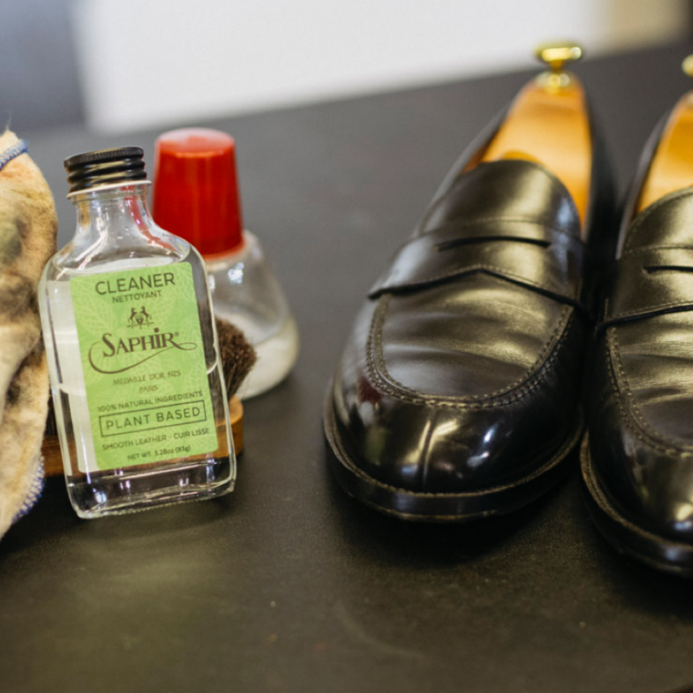 - The Cleaner will not change the nature of the leather, making it neither drier nor fatter, which allows a beautiful finish very quickly. Designed in collaboration with bootmakers, this product allows a very deep cleaning of the treated supports.